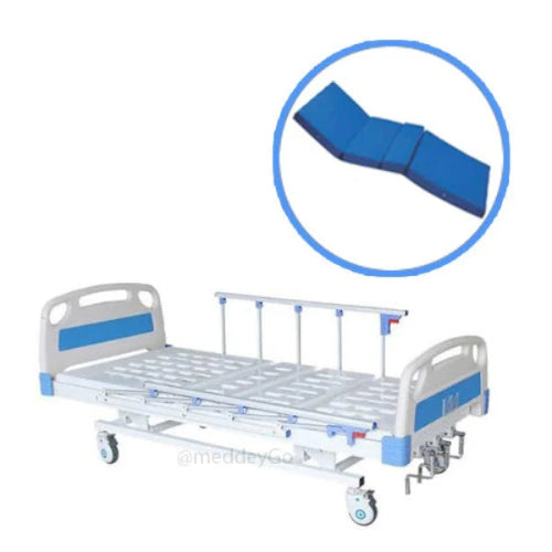 ICU Hospital Bed 5 function Mechanical With Wheels, Collapisable Railings and Mattress